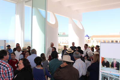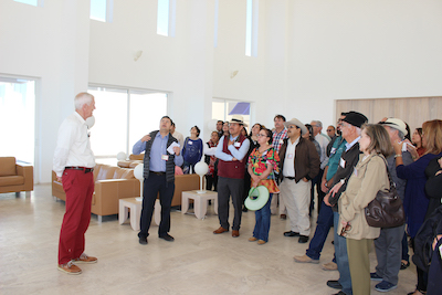 “After a 20-mile drive on a gravel road through the mountains of Northern Baja California, the landscape opens and the Pacific Ocean appears before you in all its splendor. The only indication of your destination is a brief glimpse of the observatory before you pass the gate to the property. From here you drive downhill, towards the Pacific Ocean and along the foot of the hills. After another few miles, the Conference Center becomes visible and you drive around the compound to arrive at the magnificent main entrance, centrally located in the building complex.