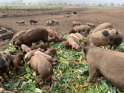 Discarded vegetables and leaves from the farm provide the goats with 30 tons of food every year. The pigs eat leftovers from the kitchen and sweet potatoes from the vegetable production.