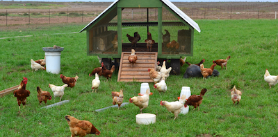The manure from those animals that are kept indoors at night, which are the chicken and goats, provides an essential ingredient for the farm’s compost production.