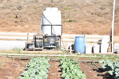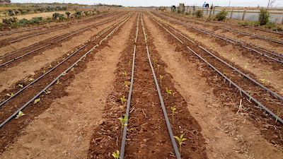 The vegetables in the agriculture receive water through a drip irrigation system. This kind of irrigation minimizes the need for water.